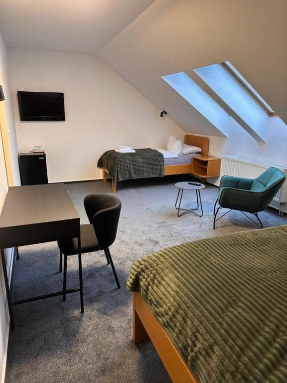 - Each room is equipped with air conditioning, a television, a radio, WiFi, and a refrigerator