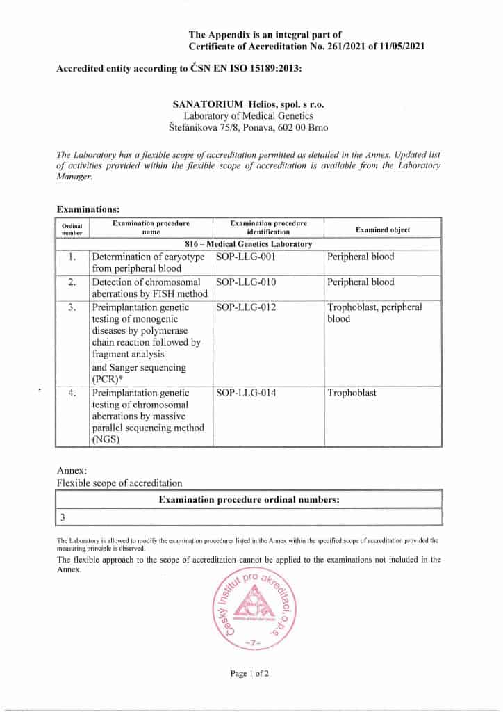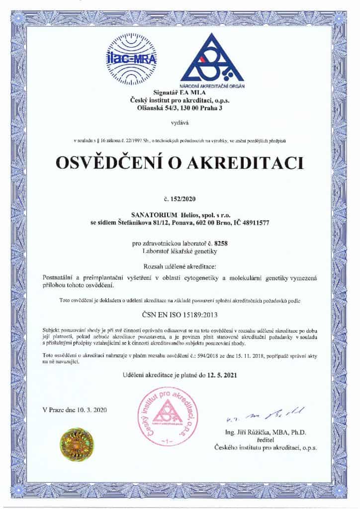 An audit of the independent agency ČIA in the Laboratory of Medical Genetics also confirmed that the conditions for its accreditation according to the ČSN EN ISO 15189 standard are met.