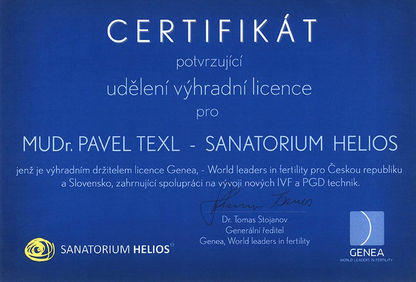 Sanatorium Helios has been the exclusive licensee of Genea in the Czech Republic and Slovakia for more than 15 years. This exclusive agreement includes cooperation in the development of new IVF and PGD / PGS techniques. The constant introduction of new technologies and their constant control lead to an increase in the quality and success of IVF in the Helios Sanatorium.