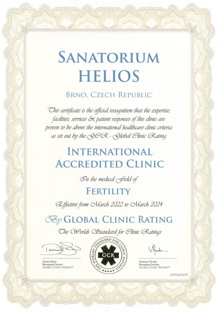 SANATORIUM Helios once again upheld the accreditation of Global Clinic Rating in March 2020. Our clinic is the first and so far the only center of assisted reproduction in the Czech Republic and Slovakia. For our center, the primary concern is the quality of work and provided care.