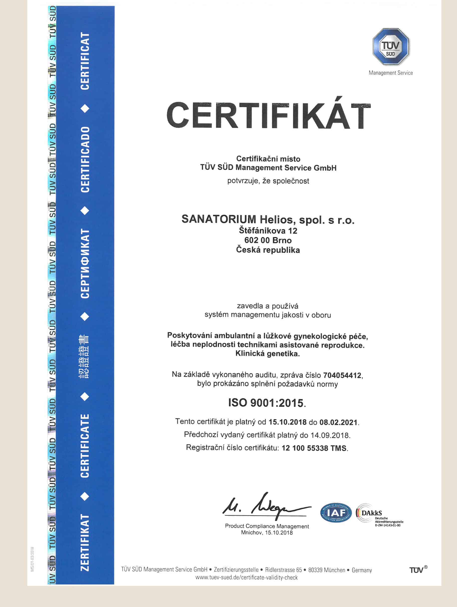 In all laboratories of the Sanatorium Helios, the primary issue is concerned with the quality of work. Therefore, all laboratories of Sanatorium Helios are regularly subject to an audit by the independent agency ČIA (Czech Institute for Accreditation, o.p.s.), whether they meet the conditions for accreditation according to the ČSN EN ISO 15189 standard. This year’s audits of the IVF Laboratory and the Laboratory of Medical Genetics, which took place from 24 to 26 February 2020, were very successful.