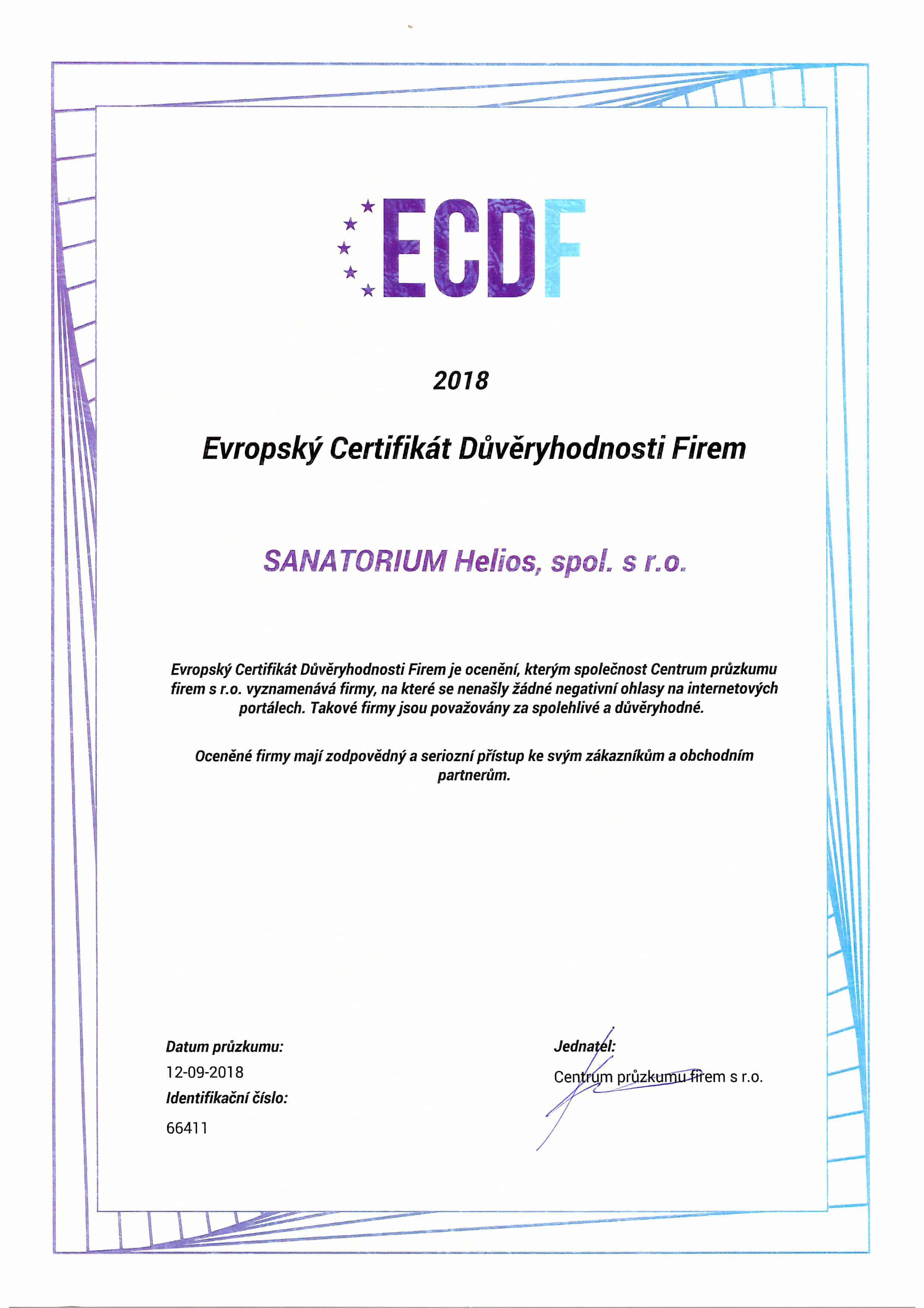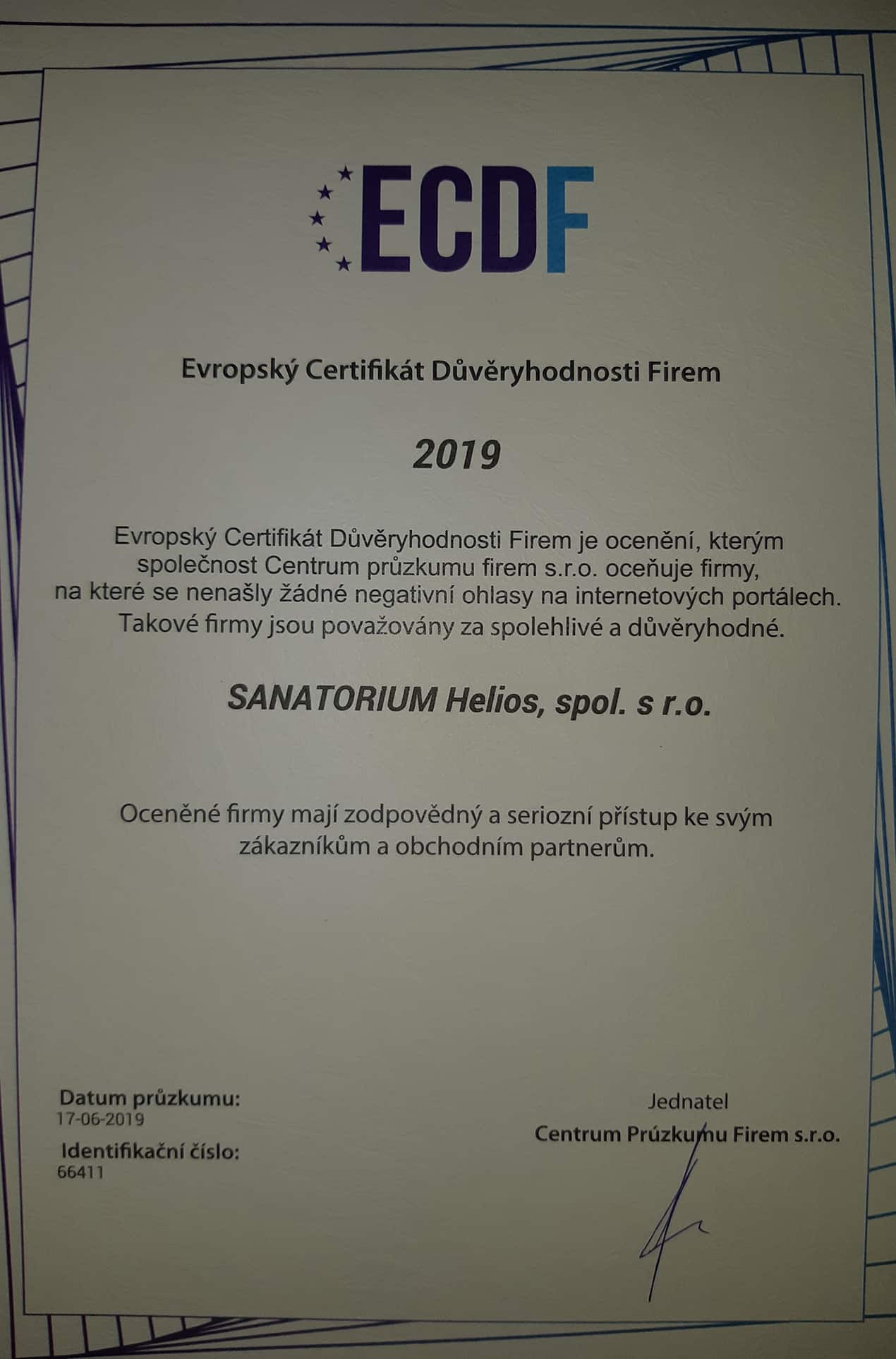 European Certificate of Credibility of Companies 2018 and 2019