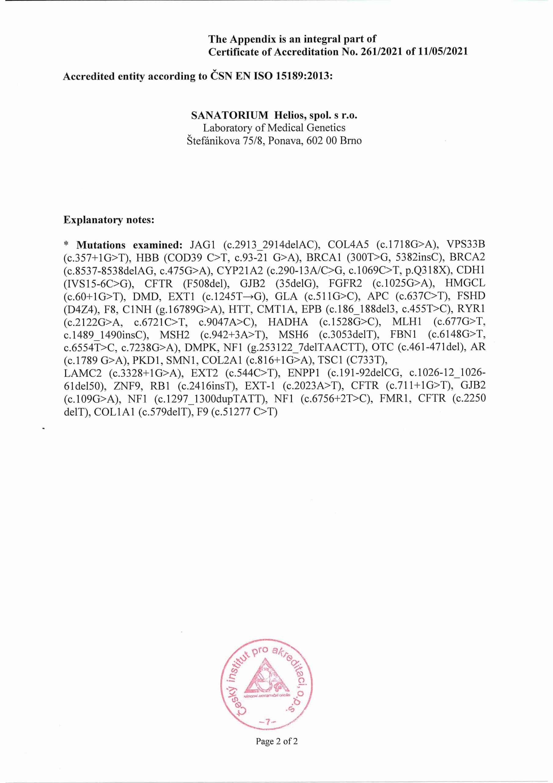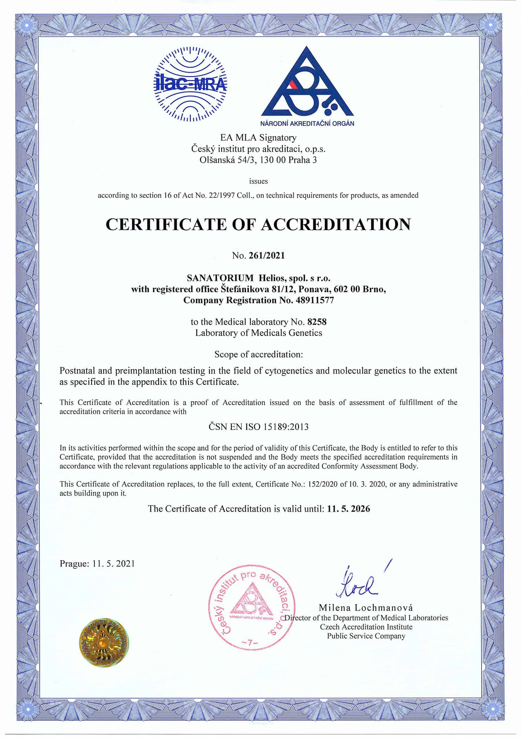 An audit of the independent agency ČIA in the Laboratory of Medical Genetics also confirmed that the conditions for its accreditation according to the ČSN EN ISO 15189 standard are met.